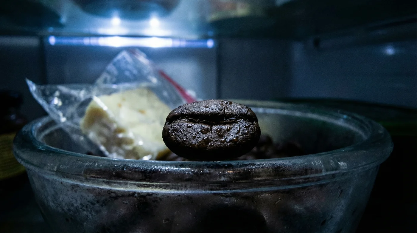 Om du placerar denna mottagliga svamp bredvid en halverad lök, rester från gårdagens vitlöksstarka lasagne och en bit mogen ost, kommer den osynligt att börja dra in dessa dofter. Kaffebönan saknar filter för vad den tar till sig, vilket innebär att din dyra etiopiska ljusrost gradvis marineras i kylskåpets samlade atmosfär.
