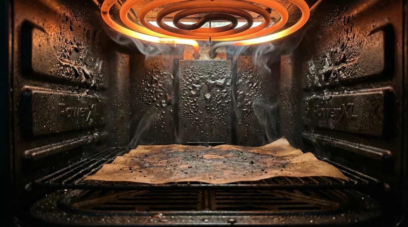 Det verkar så oskyldigt. Papperet tål ju värmen i en vanlig ugn, så varför inte här? Men denna lilla oskyldiga genväg startar en kedjereaktion som på några minuter kan ruinera din dyra köksmaskin. En skarp, kemisk stank tränger snabbt undan doften av mat och ett svagt knastrande hörs inifrån höljet.
