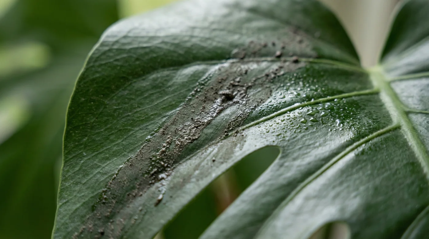 När fukten från din trasa blöter ner dammet på bladet, raderas inte partiklarna. Vattnet pressar snarare ner den leriga blandningen djupt in i klyvöppningarnas mikroskopiska hålrum och kapslar in dammet i porerna. När vattnet sedan avdunstar i rumstemperaturen, härdar denna massa likt riktig betong. Resultatet är en växt som tekniskt sett drabbas av syrebrist. Den slutar ta upp näring från jorden och tillväxten stannar av helt.
