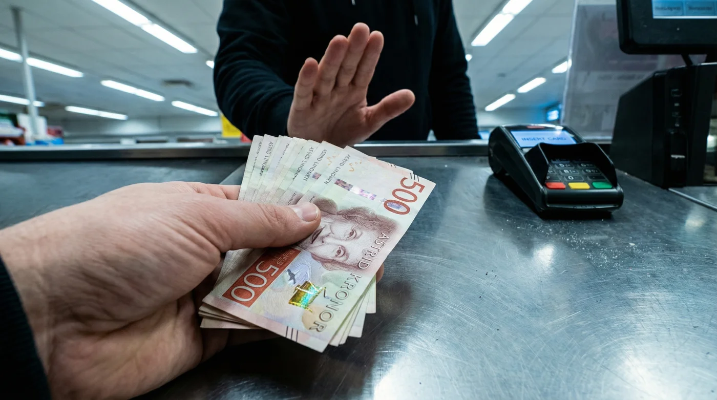 Men istället för ett invant nickande och ljudet av en kassalåda som slår upp, möts du av tvekan. Kassörskans blick flackar till innan hon skjuter sedlarna tillbaka över glaset. “Vi kan tyvärr inte ta emot så här stora summor kontant.” Det är ett oväntat hinder i en vardagsrutin du trott var skriven i sten.