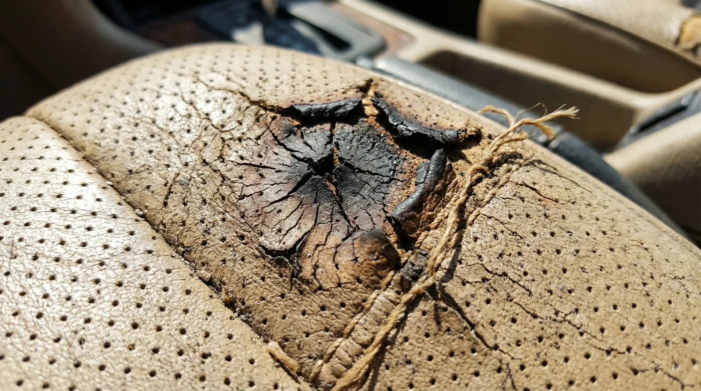 Ja, absolut. Även om själva tyget inte torkar ut och spricker på samma sätt som naturligt skinn, bryter den extrema och repetitiva hettan över tid ned det känsliga skumgummit i stoppningen och försvagar limmet under tyget.Hur kan jag med blotta ögat se om mitt läder redan har tagit skada av värmen?