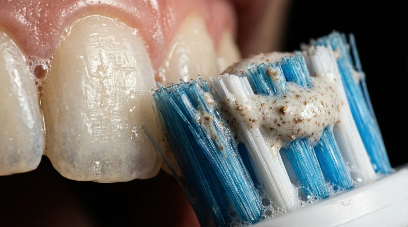 Själva grundproblemet ligger varken i din eltandborste eller i din tandkräm separat. Det är kombinationen som är förödande. Blektandkrämer fungerar ofta genom att använda mekanisk nötning, vanligen via kisel eller mikrokristaller, för att skrapa bort beläggningar. När dessa slipmedel fångas under ett borsthuvud som oscillerar med extrem hastighet, skalar du metodiskt av din emalj. Du försöker sudda bort vardagens fläckar, men slipar istället bort din egen biologiska rustning.