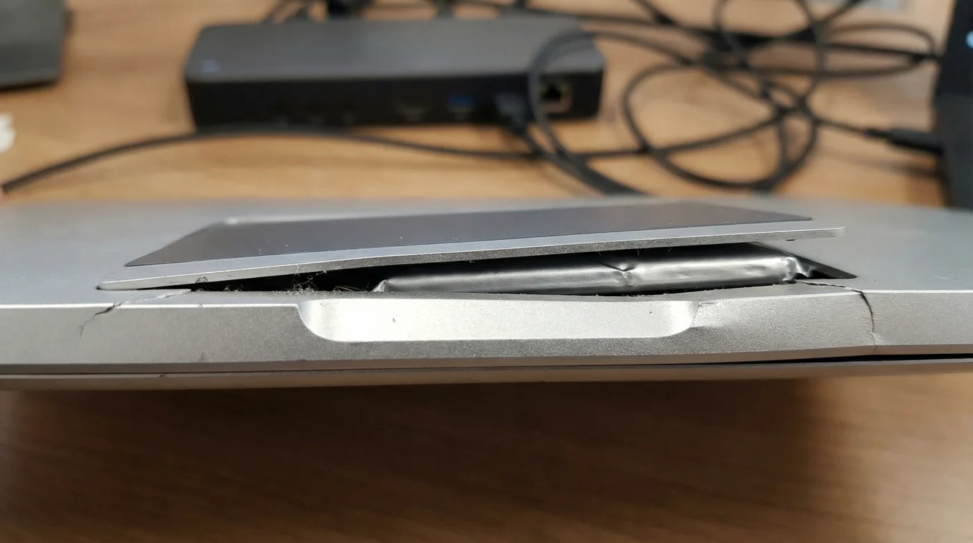 Denna mikroladdning skapar en kronisk värmeutveckling som får elektrolyterna inuti att brytas ner och bilda gas. Plötsligt märker du att styrplattan känns lite trög att klicka på. Kanske vickar datorn lite konstigt på en plan yta. Det du upplever är chassit som deformeras inifrån av ett batteri som nu liknar en hårt spänd vattenballong.