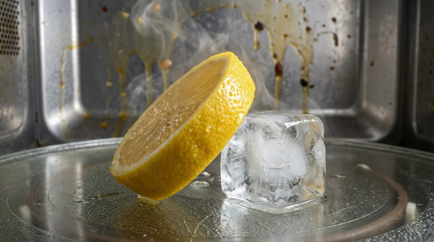 Om du bara kör en skål med varmt vatten och citron kokar vätskan bort alldeles för snabbt och försvinner. Isbiten fungerar som en livsviktig termisk bromskloss. Den sänker starttemperaturen i skålen och skapar en betydligt långsammare, jämnare ångutveckling som får smutsen att kapitulera helt och hållet. Denna förlängda fas av fuktig värme hinner mätta luften totalt och krypa in under varje liten torkad fläck, tills beläggningen mjuknar upp likt smör som glömts kvar på diskbänken.