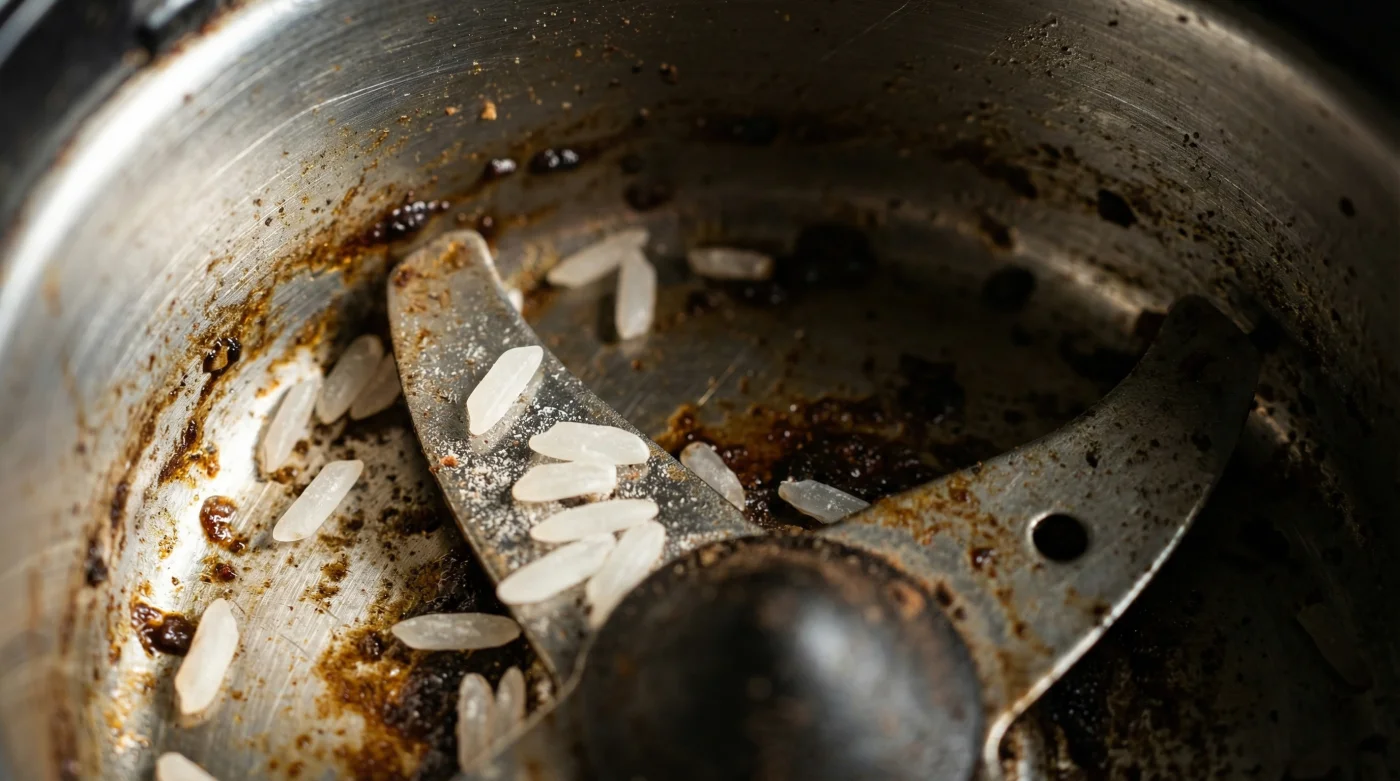 Att rengöra med rätt sorts ris är som att ge maskinens knivblad en mjuk, torr spabehandling – smutsen och fetterna försvinner spårlöst medan den nödvändiga skärpan i metallen bevaras.