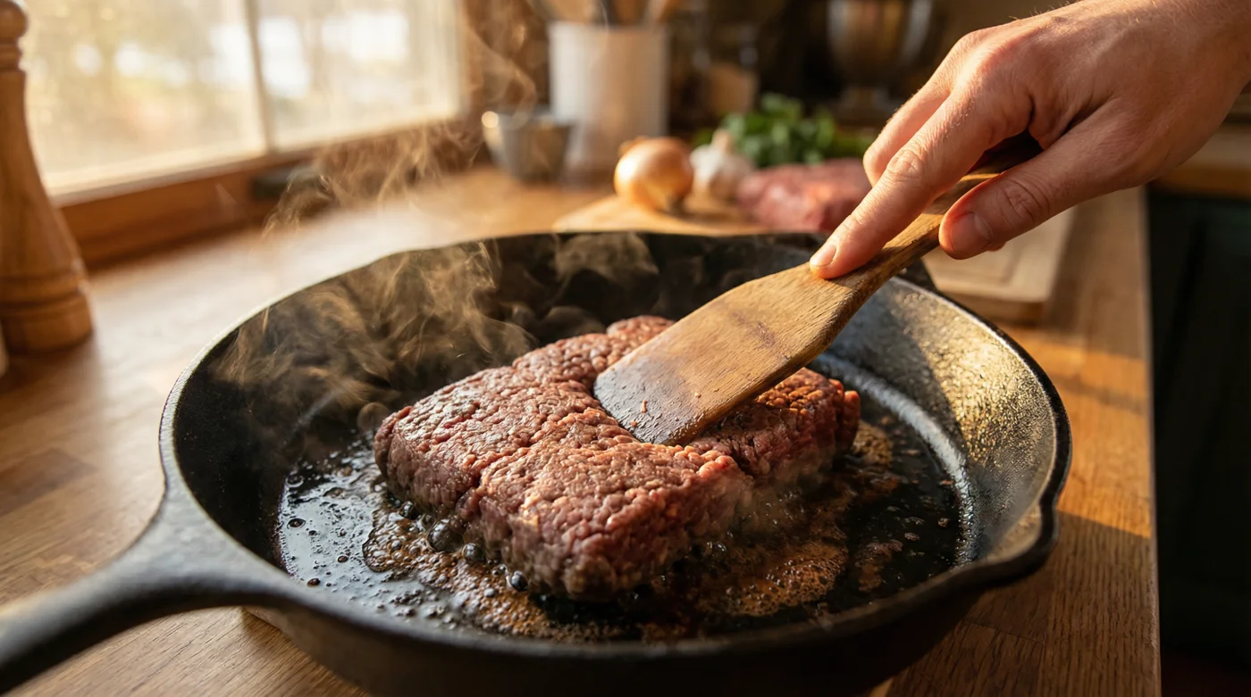 Inom loppet av några korta sekunder omges köttet av en grumlig, grå vätska. Istället för att få en karamelliserad, mörk yta står du nu och kokar din färs i dess egna utträngda juicer. Det är en frustration vi alla känner, en kompromiss vi felaktigt har accepterat som det normala sättet att laga mat.