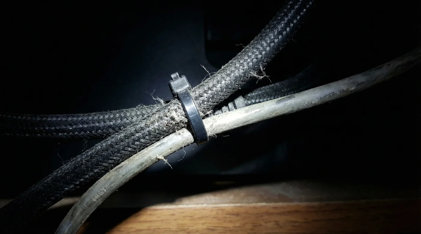 För den ordningsamma: Du älskar buntband. Du drar alla kablar från tv, förstärkare, spelkonsol och mediabox i ett enda tjockt, prydligt rör. Det ser fantastiskt ut, men du har skapat en massiv magnetisk störningszon. Separera alltid bild och ström i olika stråk.