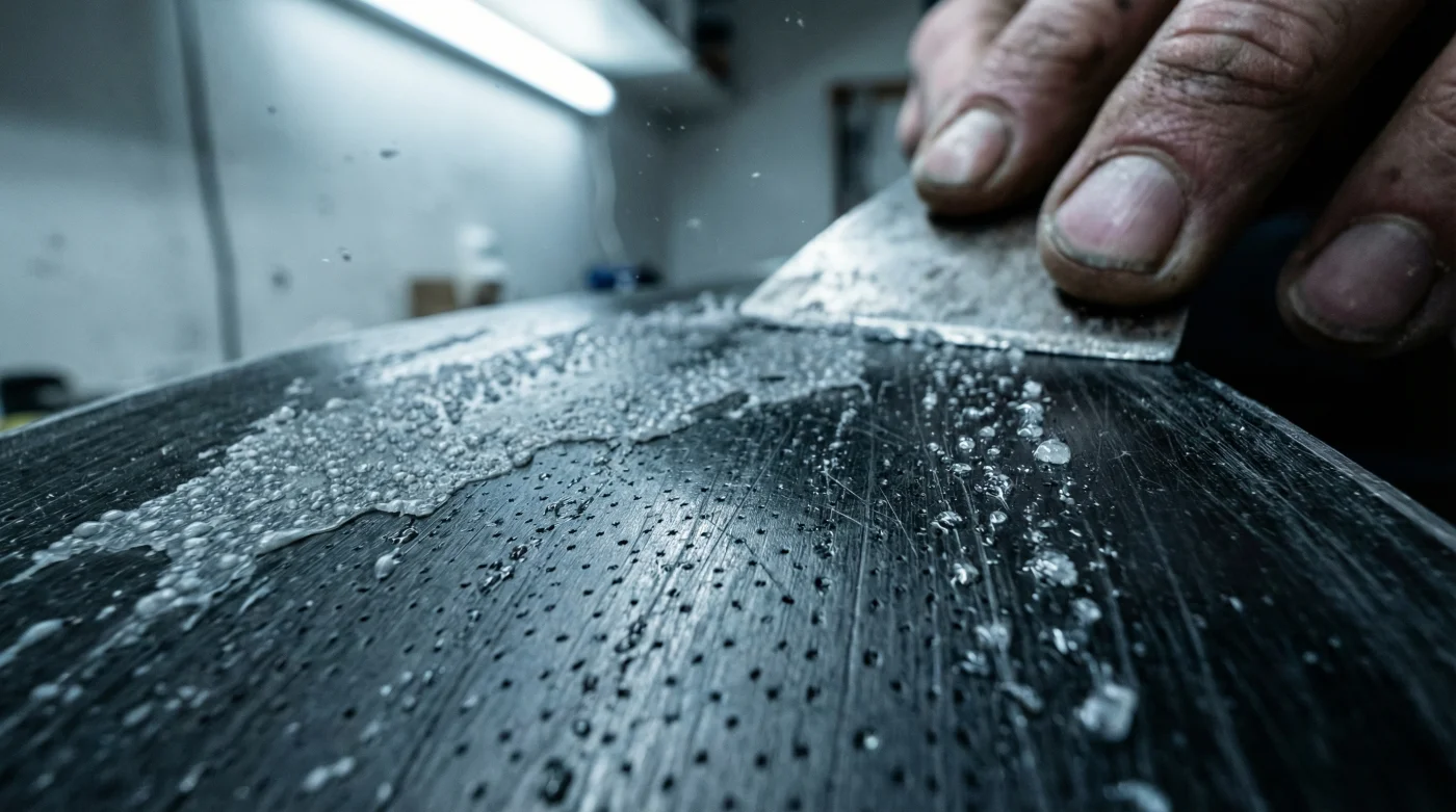Gäller detta besvärliga fel även moderna, vallningsfria skinskidor? Tyvärr ja, även skinskidornas glidzoner fram och bak behandlas ofta med exakt samma industriella skyddsvalla i fabriken.