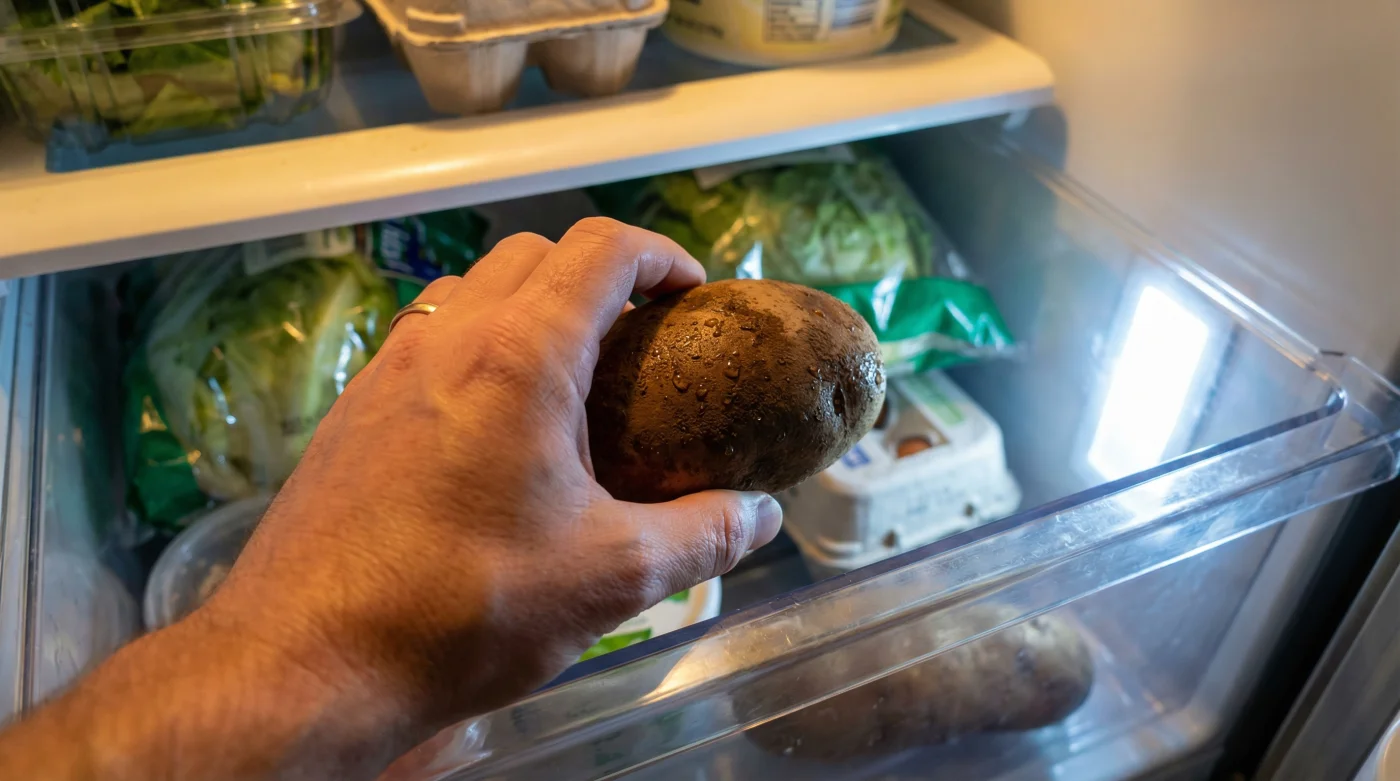 - Lyft omedelbart ut all potatis från kylskåpets kalla fack.